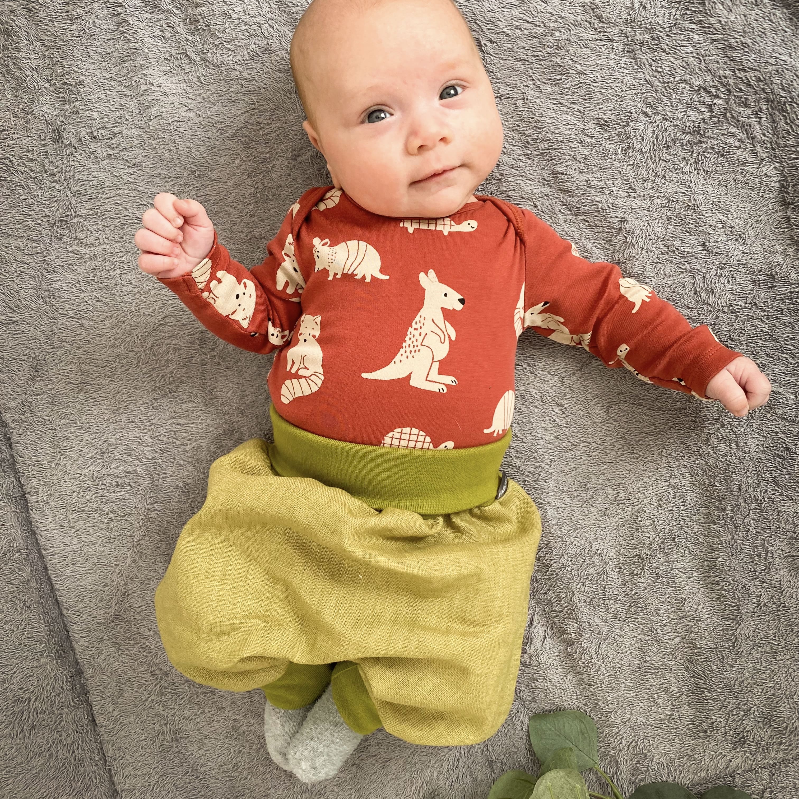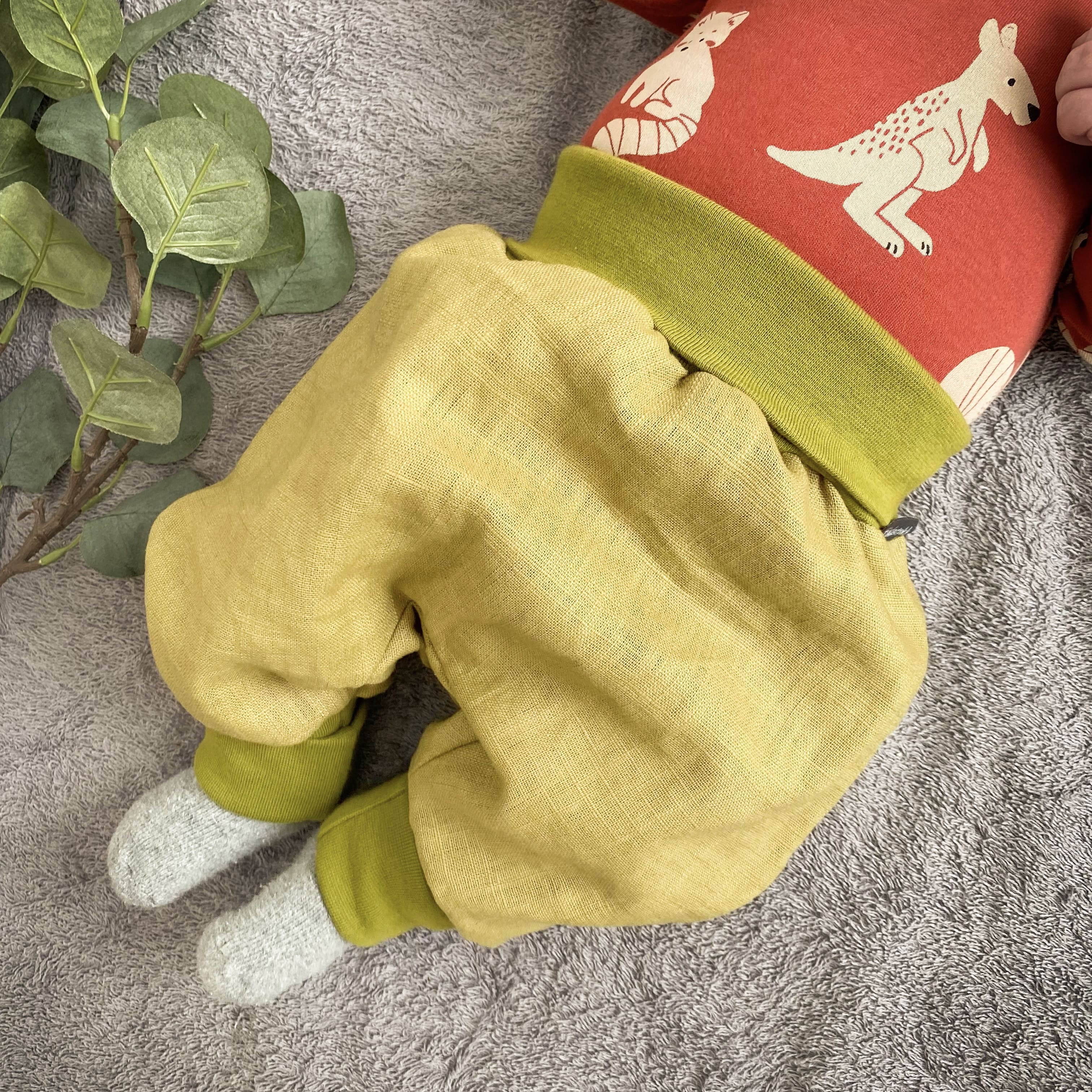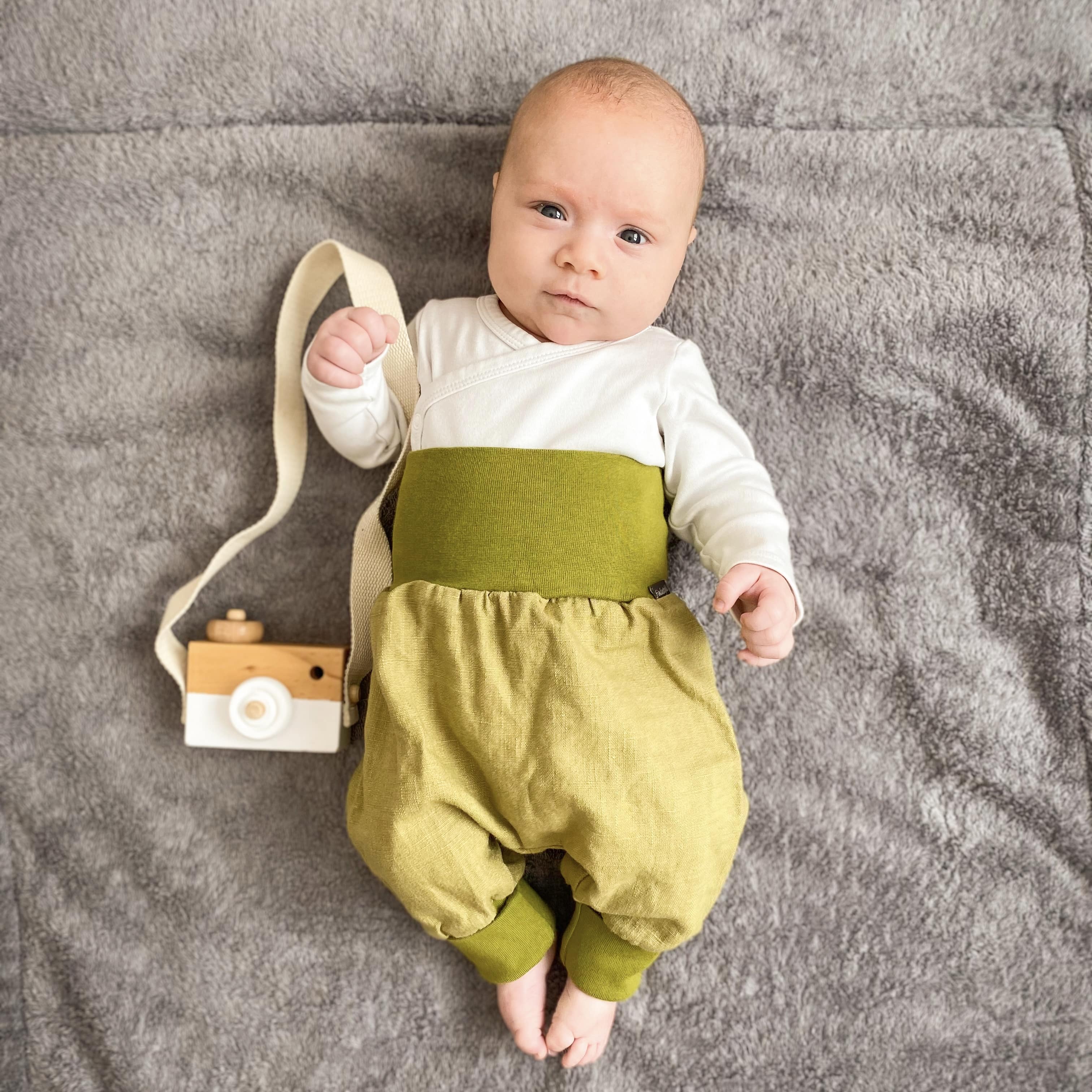 Sie ist super bequem und lässt jede Bewegung zu. Sie hat weiche Bündchen die nicht einschneiden oder drücken. Durch die Mitwachsbündchen an den Beinen wächst die Pumphose eine ganze Weile mit.