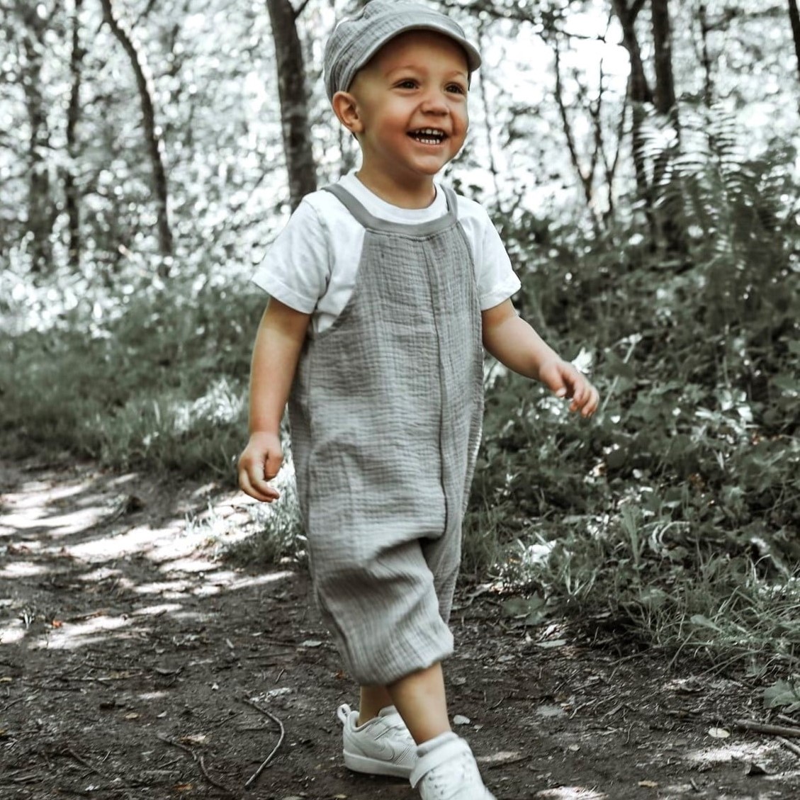 Die lange Variante hat ein Mitwachsbündchen, dass zuerst gekrempelt und später lang getragen wird. So wächst die Schlupflatzhose einige Größen mit.